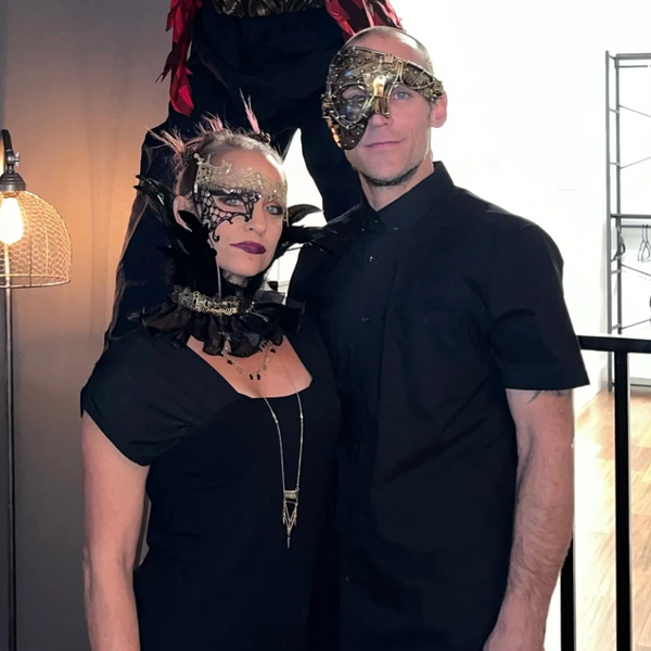 Dress up together as the iconic Día de Muertos skeleton duo La Catrina and El Catrin. With her extravagant hat and floral details and his dapper suit, these couples' costume masks are sure to impress!
