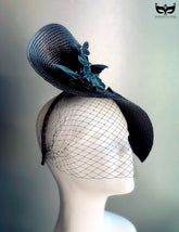 A gothic black fascinator hat with butterfly accents and a dramatic netted veil. Perfect for Halloween, masquerade parties, gothic weddings, or vintage-inspired looks, this fascinator adds a touch of mystery and elegance. Pair with black lace gowns, gothic dresses, or masquerade attire.