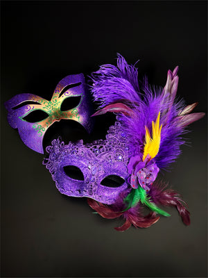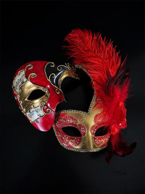 Make an unforgettable entrance with the Golden Radiance Couples Masquerade Mask Set. The men’s mask commands attention with golden baroque scrolls and a sun emblem, while the women’s mask shines with delicate gold filigree details. Designed for comfort and elegance, these masks are perfect for proms, weddings, Venetian masquerades, and Halloween events.