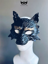 Sculpted in rich black with gilded accents, this wolf mask strikes the perfect balance of power and mystique. A dramatic piece for those who run with the wild.