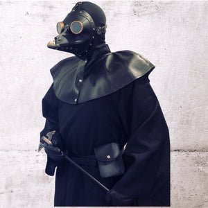 This popular plague doctor costume ensemble is based on an original engraving by Paul Fürst done in 1656 of the Der Doctor Schnabel von Rom or Doctor Beak of Rome. It shows this most unusual long robe attire worn by Plague Doctors who served as public servants at the time in any city willing to employ their services of assisting victims of the plague. They used plague masks with a beak is filled with aromatic substances used to fight miasmas or unpleasant smells floating in the air, which that the time was considered to be the cause of the disease. The staff in his hand was used to examine and prod patients from a certain distance and not touch with hands.