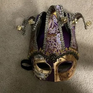 All masks include ribbons or elastic bands, except handheld stick masks.