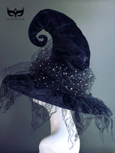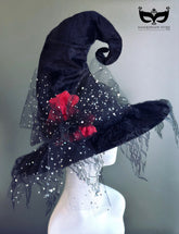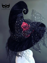 Step into magic with this black witch hat, featuring a curled tip and sparkling starry tulle trim. Perfect for Halloween, witches balls, and masquerade parties, this enchanting hat brings whimsical elegance to any witch costume. Lightweight and comfortable for all-night wear.