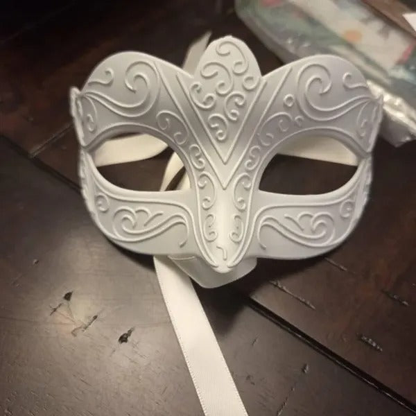 This set features a half-face phantom of the opera-style mask for the gentlemen and a delicate mask adorned with white feathers and a gem for the ladies, creating a symphony of sophistication and allure. These masks capture the essence of Venetian grandeur, making you a captivating duo at any masquerade party or special event!