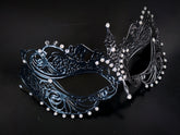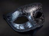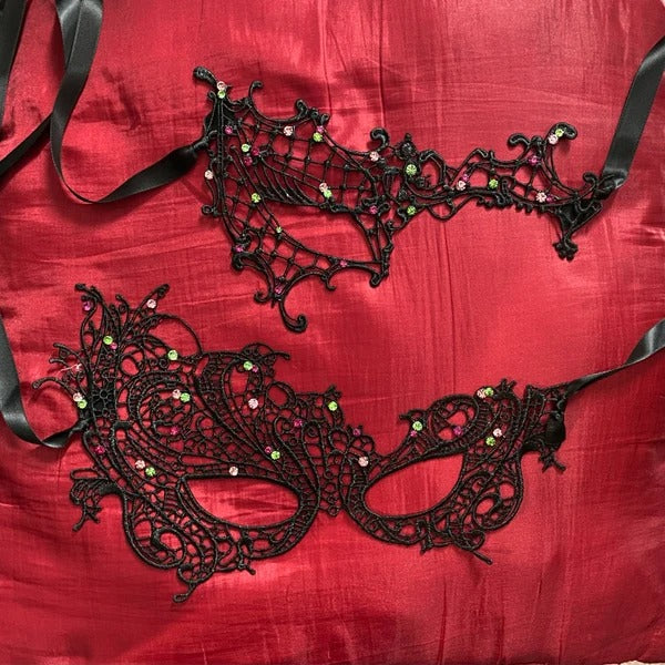 This captivating set includes two stunning masks, both designed in the classic Venetian style. The mask is adorned with sparkling rhinestones, reflecting the light and adding a touch of enchantment to her look while the black mask includes shimmer and exudes strength and sophistication, making him a charismatic presence at any masquerade or other special events.