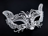 Embark on an enchanting journey with our white couples masquerade mask set featuring a stunning laser-cut metal fox mask adorned with rhinestones for her, and a powerful wolf mask for him. Together, you'll create an unforgettable duo at any masquerade party, ball, and other elegant events!