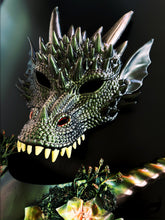 A fire-breathing dragon meets enchanted forest magic. A spiked and scale-textured mask in dragon green, a statement of fantasy lore and mythical charm.