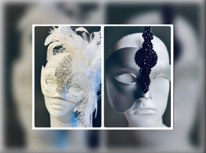 All masks include ribbons or elastic bands, except handheld stick masks.