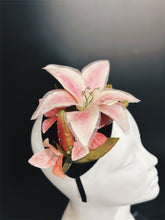A beautiful statement piece adorned with soft pink lilies and gleaming rhinestones, this fascinator hat is perfect for tea parties, derbies, and elegant events.