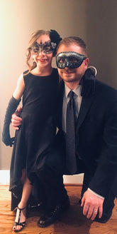 This masquerade mask set celebrates the special bond between a father and daughter, allowing you to make a grand entrance together at masquerade balls and costume parties. The daughter's metal mask is adorned with shimmering feathers and a captivating brooch, while the father's Venetian mask adds a touch of mystery and sophistication.