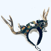 Step into the heart of the forest with our women's deer antler headdress. Crafted with lifelike golden antlers, this headdress embodies the grace and majesty of a deer. Adorned with artificial forest foliage, it brings the enchanting beauty of nature to your attire. From themed parties to fantasy events, our antler headdress transports you to a realm of woodland magic!