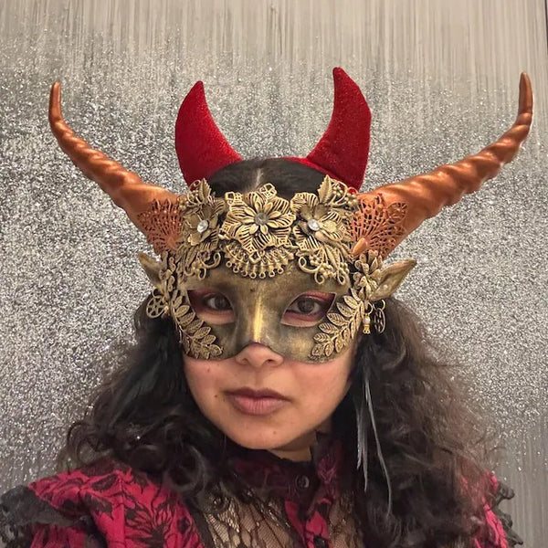All masks include ribbons or elastic bands, except handheld stick masks.