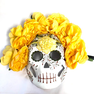 This embroidered yellow rose full-face mask is a radiant choice for costumes and masquerades. With golden floral embroidery, lush faux blooms, and graceful detailing, it’s perfect for Day of the Dead, Halloween, and festivals. Lightweight and theatrical, it offers a striking blend of tradition and elegance for parties, parades, and stage events.