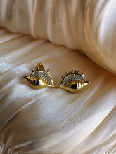 Inspired by the beauty of the sea, these elegant stud earrings feature a sculpted shell design with delicate sparkling accents. The smooth gold-toned finish paired with shimmering stones creates a refined coastal aesthetic that feels both timeless and modern. Perfect for adding a subtle statement, these earrings bring a touch of ocean-inspired charm to everyday looks or vacation styling.