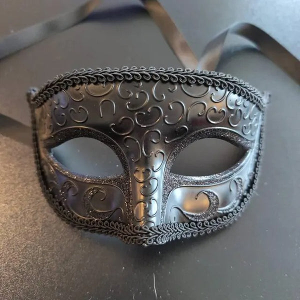 All masks include ribbons or elastic bands, except handheld stick masks.
