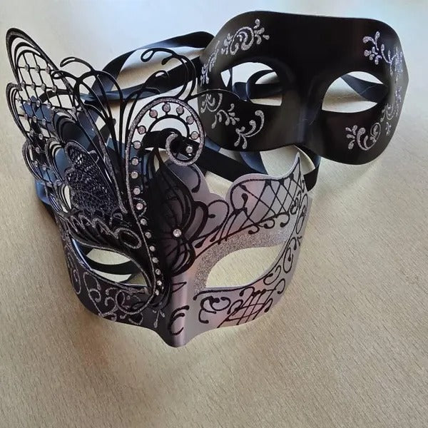 All masks include ribbons or elastic bands, except handheld stick masks.
