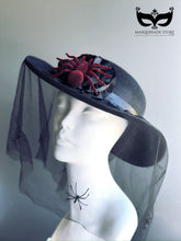 Creep in style with this black Halloween spider veil hat, topped with a bold red spider accent and cascading mesh veil. Adorned with crawling spider details, it’s the ultimate accessory for witches, gothic costumes, and Halloween parties. Lightweight and eerie, it blends fashion with fright for a hauntingly chic statement.