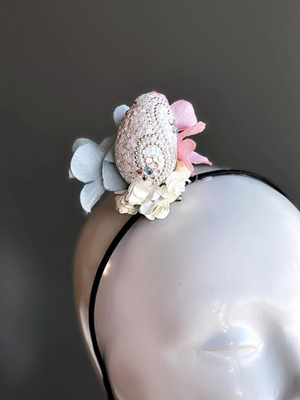 Celebrate the joy of spring with the Springtime Nest Headband. This delightful piece features a playful arrangement of glittering pastel eggs nestled among delicate green foliage and accented by a striking white feather. Its lightweight design ensures comfortable wear throughout the day. Embrace the vibrant spirit of spring with this charming and unique fascinator. This piece comes with a clip attached to the back so it can be worn as a headband or as a hair clip!