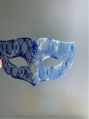 The mask boasts striking shades of blue, with shimmering iridescent rhinestones. Crafted with intricate lace, this mask showcases a captivating design that adds a touch of whimsy to your child's look. Whether your child is attending a costume party, or a themed event, this mask ensures they'll stand out and have a blast.