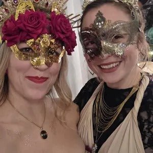 All masks include ribbons or elastic bands, except handheld stick masks.