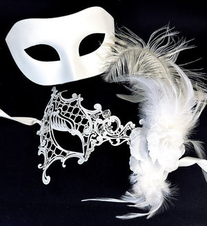 All masks include ribbons or elastic bands, except handheld stick masks.