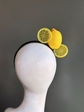 - Features: Sculpted lemon, citrus slice detail, structured headband