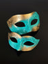 - Mask Color - Light Blue and gold ombré base with glitter scroll details