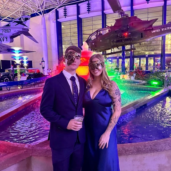 Step into elegance with our Twilight Waltz masquerade mask set in shimmering light blue and gold. This matching duo is lightweight and comfortable, perfect for masquerade balls, Mardi Gras, or Halloween couples costumes. Features glittering scrollwork and a stunning ombré finish for a sophisticated yet festive look.