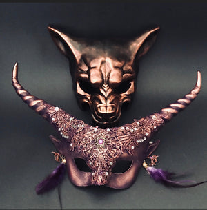 Adorned with intricate horn details and lush foliage, this mask set embodies the spirit of the forest. Be the best dressed at the ball, Halloween party, or any other event with these masks!