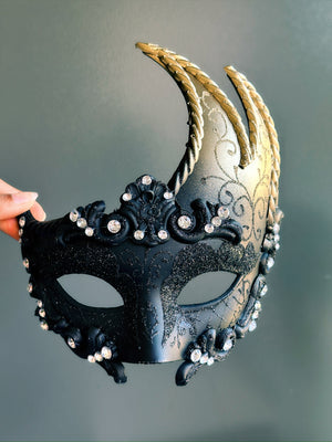 Channel mystery and Venetian tradition with this black and gold plague doctor masquerade mask. Its elongated beak, ornate trim, and subtle scrollwork evoke historic intrigue with a modern edge. Perfect for masquerade balls, theatrical costumes, and gothic events, this dramatic piece ensures unforgettable presence.