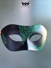 Mens Black Mask with Green Filigree