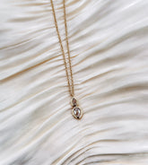 Our Calista necklace features two bezel-set pear-cut crystals arranged in a graceful drop design on a gold-plated chain. Hypoallergenic, non-tarnish, and waterproof, it is made to last with beauty and durability.