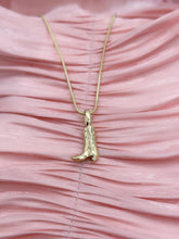 The Cowboy necklace features a polished cowboy boot pendant, bringing a playful yet refined charm to any look. Hypoallergenic, non-tarnish, and waterproof, it is crafted for durability and everyday style.