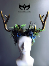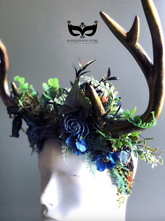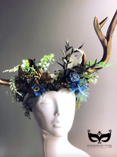 Evoke the beauty of nature and the mysticism of mythical creatures in this striking Deer Antler Mythical Headdress in woodland Greenery theme