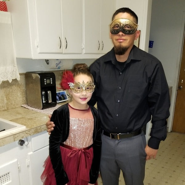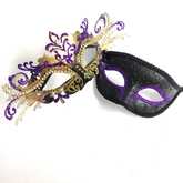 A mesmerizing couple's shades of blue masquerade mask set. men’s mask is a cobalt blue shade and women’s is a mix of black, royal and navy. From galas to masquerade parties, this couple's set will elevate your allure to new heights.