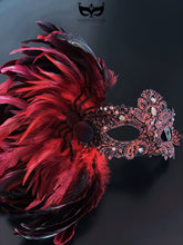 Golden Plume is an opulent masquerade mask featuring intricate gold lace, lavish dark black and gold highlight feathers, and a striking blue gemstone accent. Designed for grand entrances, this mask exudes regal elegance, making it ideal for masquerade balls, Venetian-themed events, and theatrical performances.
