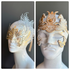 This regal couples masquerade mask set combines elegance and power. The women’s mask shines with ornate filigree in silver and gold, while the men’s mask features a bold Roman-inspired design with horse and crest details. Perfect for masquerade balls, weddings, and grand themed parties, this set exudes timeless sophistication and strength.