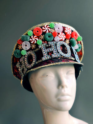 Our red sequin captain hat, adorned with gold trim, is your ultimate accessory for raves, festivals, and parties! The gold spiked goggles, featuring iridescent lenses, add an extra layer of style to your ensemble.