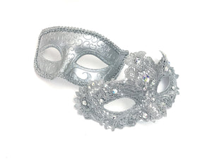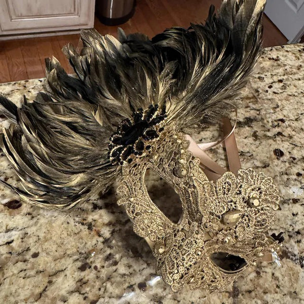 All masks include ribbons or elastic bands, except handheld stick masks.
