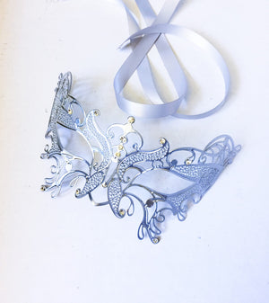 All masks include ribbons or elastic bands, except handheld stick masks.