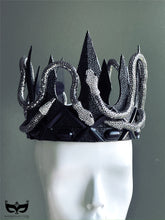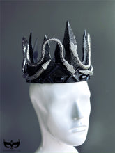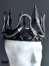 Dare to rule in this gothic black crown, adorned with metallic serpent detailing and rugged textures—crafted for dark royalty, fantasy cosplay, or Halloween kings.