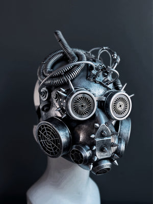 Conquer the realms of fantasy with our remarkable steampunk cosplay gas mask in gold. Dominating the mask are bold spikes and intricate tubes, exuding a commanding presence that's perfect for cosplay, parties, or conventions.