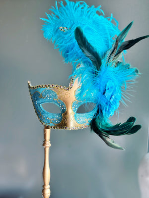 Valor Handheld Stick Mask - Gold/Turquoise