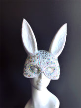 Bring sparkle and charm with the Crystal Bunny mask, featuring tall white bunny ears and a surface encrusted with rhinestones and holographic gems. Perfect for masquerade balls, raves, cosplay, and themed events, this mask pairs beautifully with playful festival outfits, Easter costumes, or chic party attire.