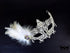 Each mask features an exquisite blend of metal work and shimmering crystals, and soft feather details, displaying artistry and elegance. The patterns and details of these masks in white hues make them perfect for any grand event, from masquerade balls to sophisticated parties.
