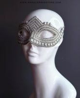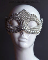 Step into the spotlight with this white pearl masquerade mask designed with shimmering rhinestones and layered beading. This elegant women’s mask elevates any look for masquerade balls, holiday galas, bridal events, or themed parties. Lightweight and comfortable, it features a soft backing and secure fit while showcasing detailed pearl patterns that add a glamorous finish. Perfect for brides, formal wear, costumes, photoshoots, and special events.