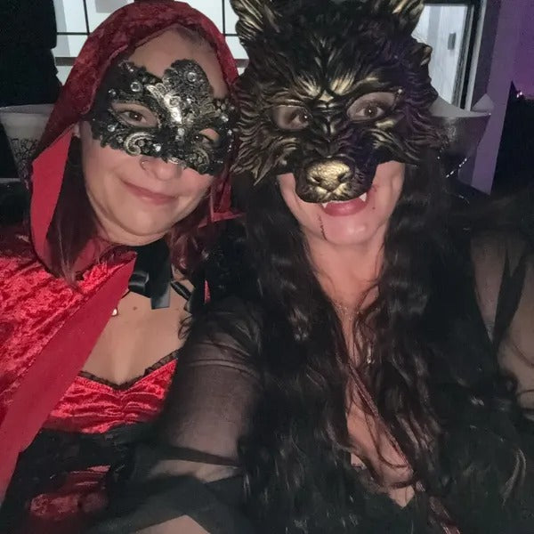All masks include ribbons or elastic bands, except handheld stick masks.