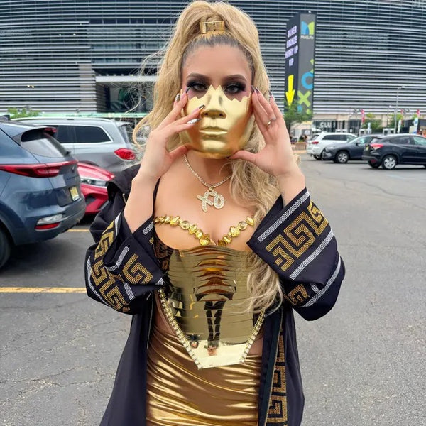 - Special Features - Rhinestones on the women's mask