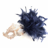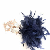 Elegant Venetian Rose Gold Mask - Navy Feathers