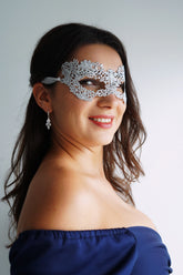 Our Princess style lace masquerade mask is ideal for romantic masquerades, weddings, and refined events. Customize the lace with your choice of rhinestone colors or a personalized mix!